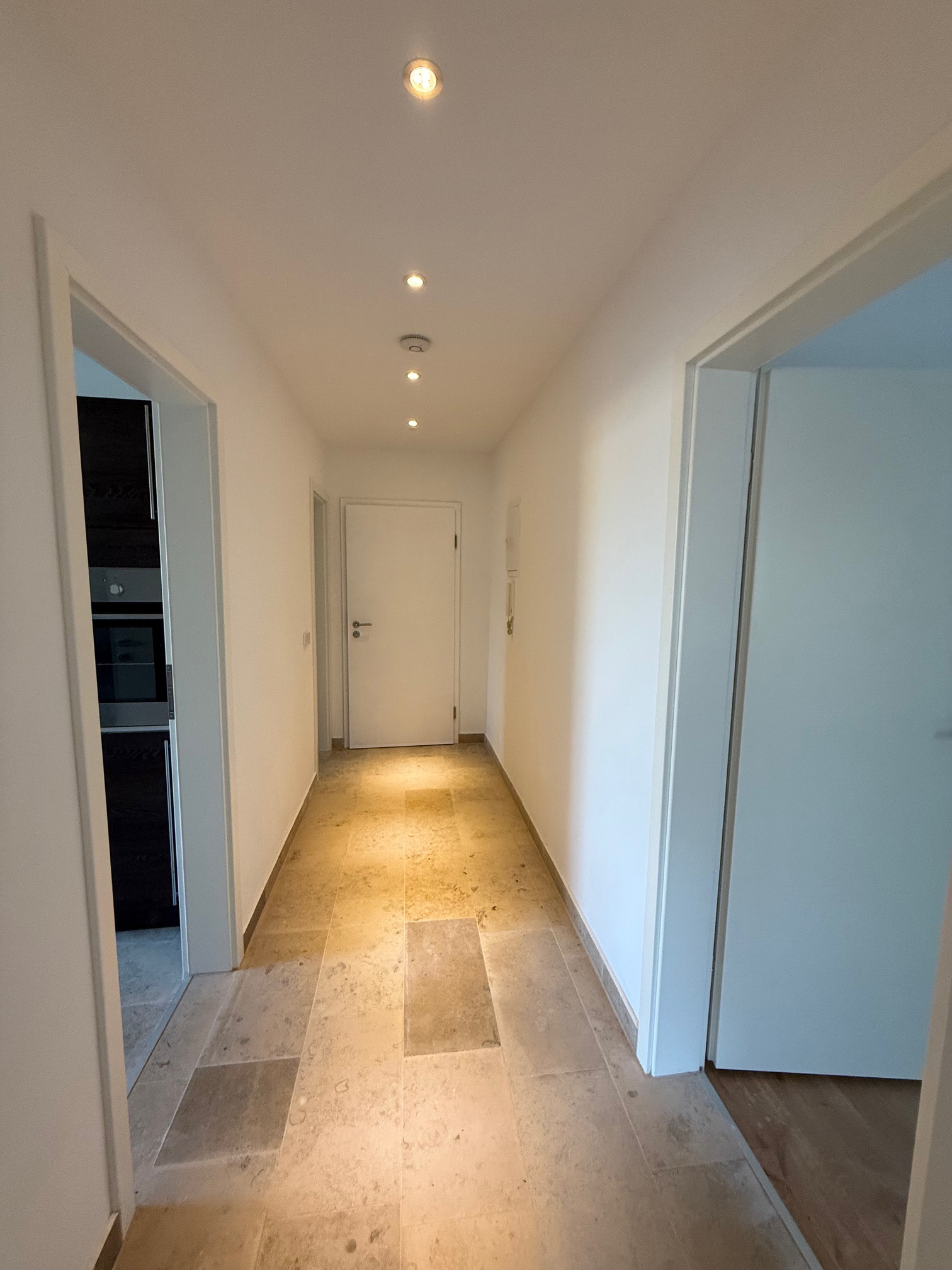 Deckenspoots im Flur, Bad und in der Küche vorhanden,