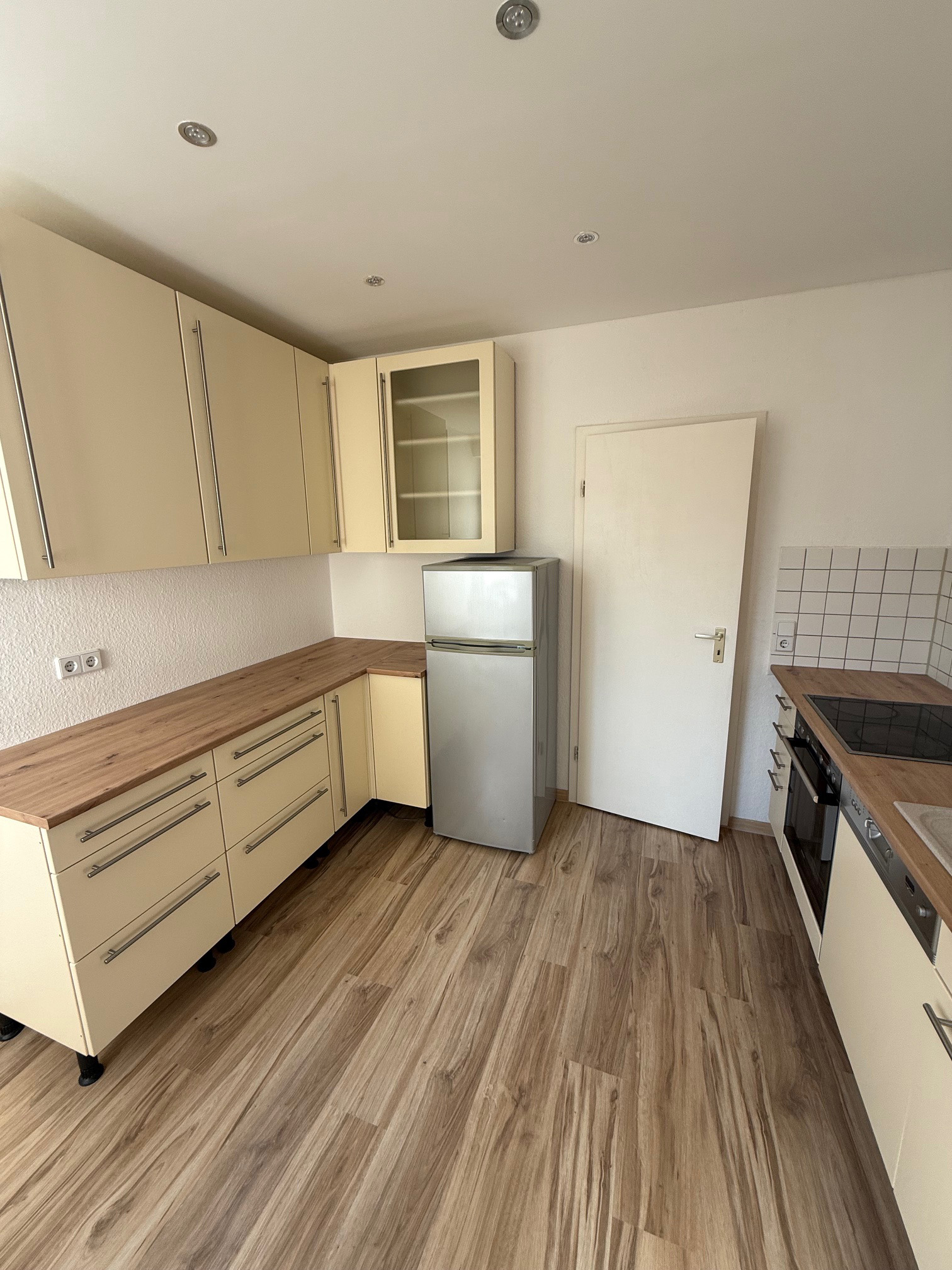 Deckenspoots im Flur, Bad und in der Küche vorhanden,